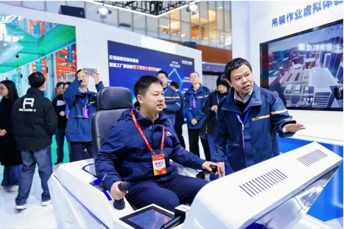 徐工领航级工厂模式与智能智造平台展示、智能装备、万物互联互通、绿色低碳工厂、文创展区……徐工以综合解决方案亮相博览会,向世界展现徐工智能制造产业多元生态,讲好徐工智造故事”。