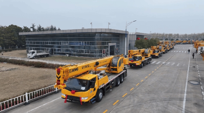 徐工起重机械智能制造基地再次吹响发车集结号,6台身披“徐工金”的钢铁重器,正式列队出征,目的地——江苏泰兴!
