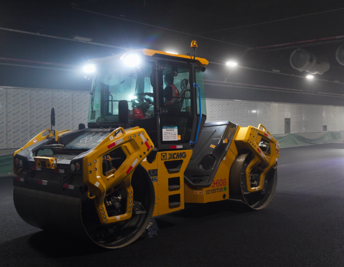 徐工XD135TOSIV振荡压路机,作业效率更高,压实更平稳、振动波及范围更小,成为“深中通道”关键施工环节的中坚力量。