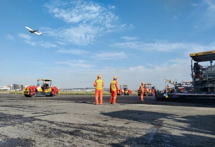 想象一下,航班在西跑道频繁起降的同时,数百名施工人员和数百辆设备,就在几百米外忙碌作业。施工挑战,前所未有的严峻。传奇,在这短暂的15天一一上演。不过,这传奇的纸簿上,亦被烙上“徐工金”的身影。徐工成套道路机械,在此项高难度施工中,迎难而上、挑起重担。