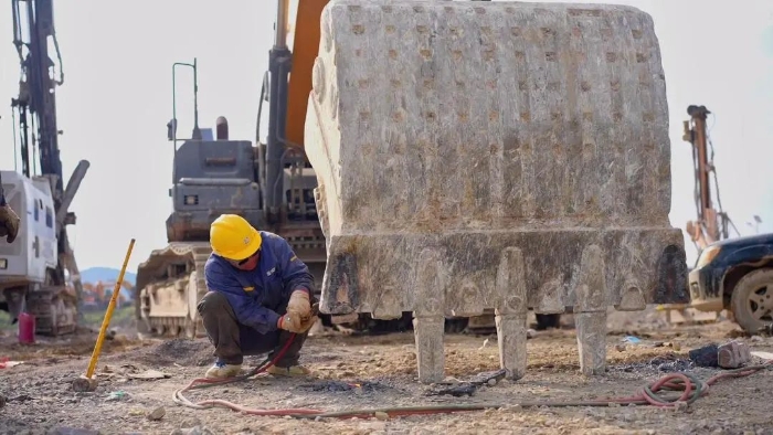 除了为客户提供机型配置方案、挖掘机与自卸车的配合方案,徐工挖机相关负责人表示,“我们还根据平场的物料特点,为客户选择了合适的铲斗、斗齿、钎杆、履带板等部件。”