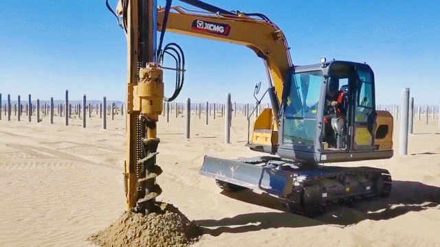 自5月份进场以来,我们已经使用徐工设备完成了5万余根光伏桩基的铺设,徐工产品质量可靠,故障率低,尤其是由XE85GA改装的引孔机,与传统引孔机相比更加高效灵活、打孔也更精确,选徐工准没错!