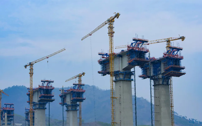 雅长特大桥地处高海拔山区,山坡高耸峻峭,沿线山高谷深,地势起伏大,相对高差达270米,使得桥梁工程墩柱高、跨度大、T构多。面对超高墩施工风险高、技术要求高、作业场地狭窄等难题,十余台徐工XGT6013-6S1、XGT6515-10S1凭借精准、高效、安全的吊装性能,将桁架钢筋、箱梁护板等部件吊至百米高空,为项目建设提质增效。