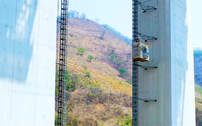 大桥建设还投入使用了9台SC200/200FS1施工升降机,应用新型高可靠传动机构及高能效齿轮减速电机,运行平稳、安全可靠,协同徐工群塔保障大桥施工有序开展。