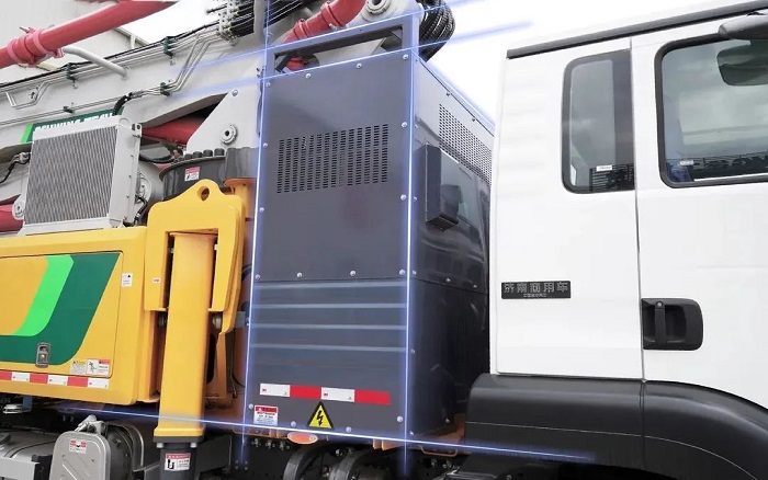 更值得一提的是,徐工HB47VH插混泵车支持两种充电模式:充电桩充电和外接380V工业电。前者方便快捷,后者则能实现170方/小时大排量、全功率泵送,彻底解决了泵送能耗焦虑。