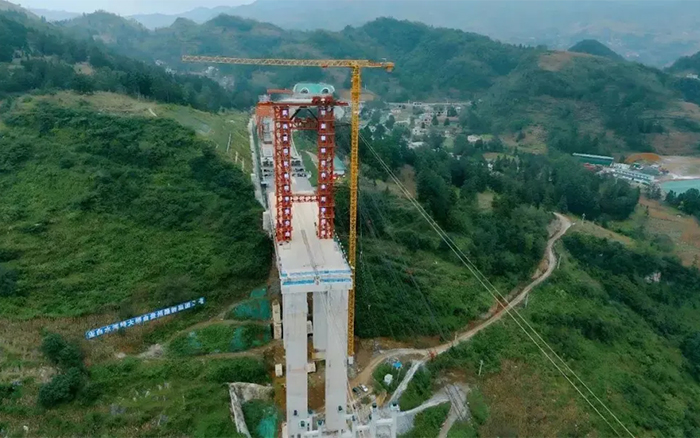 “这座桥工期紧,技术难度大,吊装过程中构件结构重、空间姿态调整难度高,给项目施工带来了一定困难。”白水河特大桥项目的钢结构负责人毛宗宇说。白水河特大桥主桥采用跨径340m的上承式钢管混凝土变截面桁架拱桥,全桥共设计58个吊装节段,在百米高空中完成拼装,而误差要保持在毫米级,这些为塔机施工带来了高难度挑战。