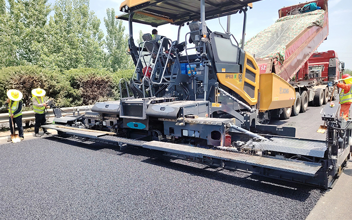近日,淮徐高速正在进行油面施工养护工程。为保障道路质量和施工效率,施工方采用徐工RP905IV摊铺机进行路面的摊铺工作。RP905IV摊铺机是徐工热销款摊铺设备之一,具有高效、稳定和精确的摊铺能力。本次施工中,高速公路摊铺宽度8m,摊铺厚度为4.8cm,RP905IV为项目的油面施工提供了高质量保障。