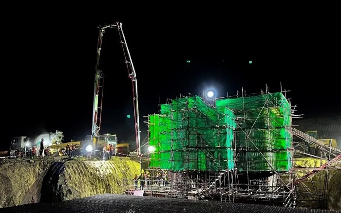 近日,非洲厄立特里亚市某金属矿迎来重大工程节点 , 主矿区铜锌选矿厂磨矿车间半自磨机区域基础混凝土浇筑完成!