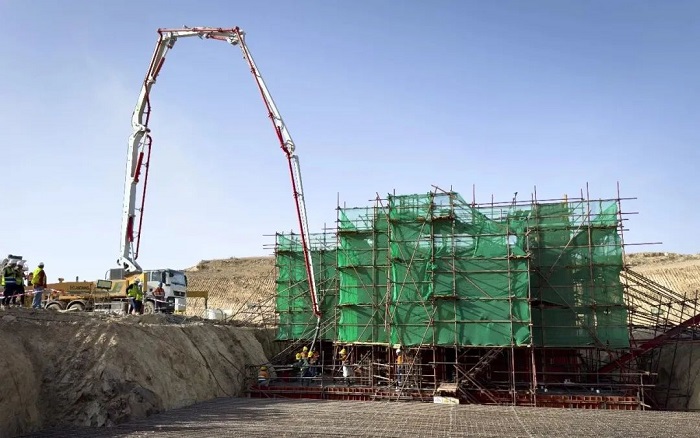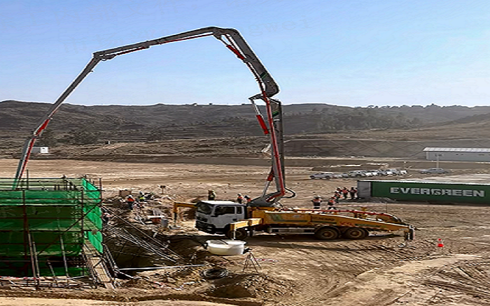 此次工程不仅面临施工设备和材料供应奇缺等难题,且厄籍职工没有大型混凝土浇筑经验,加之项目浇筑需要长时间、大方量的持续性作业,施工困难重重。徐工HB43V泵车和徐工搅拌车协力共进,完美应对此次浇筑任务。