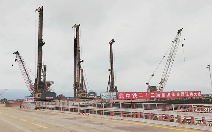 在深水基础施工中,徐工采用创新的钢护筒加超大旋挖钻施工方法,确保一次性成孔,大大提升了施工效率。