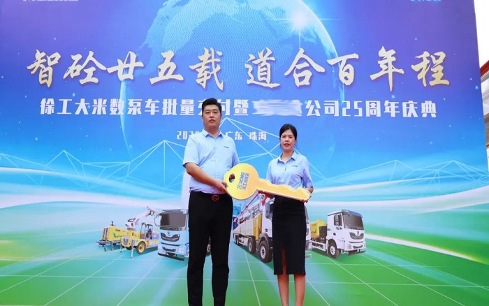 随后,徐工营销代表将交车钥匙交付客户项目负责人。“出发!”一声令下,数辆齐发,徐工泵车为珠海建设事业再注新活力。