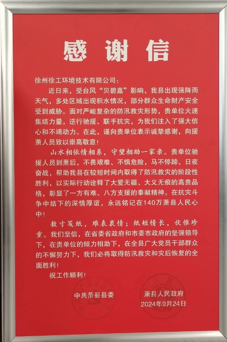 “此行是专门来感谢徐工在萧县防汛救灾中的无私奉献。”董局长表示,“你们的行动不仅体现了徐工的社会责任感,更让我们感受到了‘防汛救灾显大爱 风雨同舟见真情’的深刻内涵。我们特地做了锦旗和感谢信,来表达我们的谢意。”