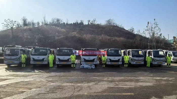 12月6日,在山东济南交车现场,车辆整齐排列,徐工向当地交付了两种不同车型的后装压缩式垃圾车,这些车辆将协同作业,肩负起济南市生活垃圾的收集和转运工作。