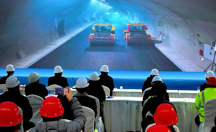 来看徐工智慧→重庆首次山区特长隧道无人摊铺施工