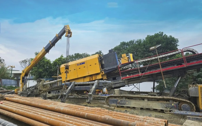 闽江地形环境复杂,花岗岩、淤泥交错,项目停滞四年之久,施工难度极大。就在项目面临“困境无法突破”之际,徐工XZE8200电驱水平定向钻机临危受命,在有利穿越路线被破坏的情况下,重新开辟路线。
