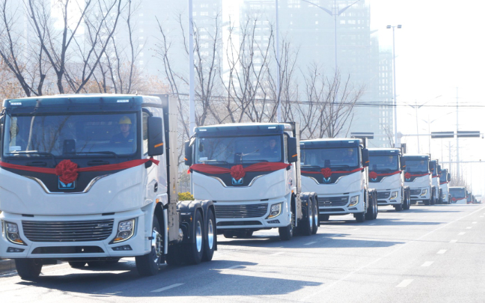 “我宣布,徐工新能源牵引车百台交付暨千台签约仪式圆满礼成,发车!”徐工集团副总经理,徐工汽车总经理、党委书记夏泳泳一声令下,百台徐工新能源牵引车队列整齐、迈步向前,为更多区域“双碳”目标实现作出更大贡献。