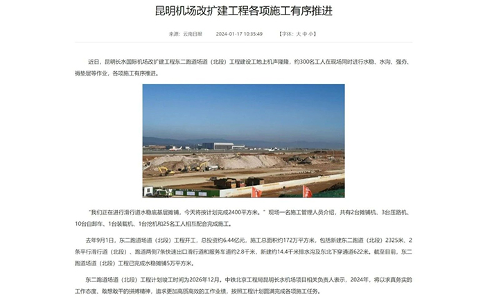 昆明长水机场改扩建工程是国家“十四五”规划中推动云南服务和融入国家“一带一路”建设的重大项目,也是支撑云南面向南亚东南亚辐射中心建设、实施民航强省战略的重点项目。此次跑道施工由徐工RP905HD等4台摊铺机、XD135T等6台压路机进行沥青透水层的铺设。摊铺宽度8m,摊铺厚度5cm。