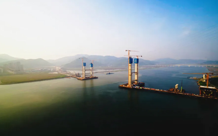该项目建设规模大,结构类型多,科技含量高。全线海域桥梁长度约9公里,海上作业工程量大,项目施工区域内气象、水文、地质条件复杂,同时还面临航运繁忙,海上施工组织难度大等挑战。