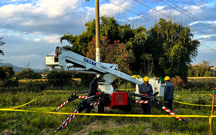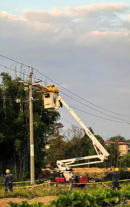 该乡间地势复杂,道路崎岖,传统作业设备难以施展。徐工 GTBZ13A 履带式绝缘斗臂车却凭借独特履带底盘设计,展现出强大跨障能力。它能轻松跨越坑洼、沟渠等障碍,如履平地,快速抵达施工地点,极大提高了施工效率。其最小的外形形态,灵活方便,可以轻便地通过狭窄门道,在狭窄空间也能自如穿梭。
