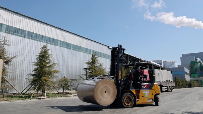 在华北某大型纸卷厂内