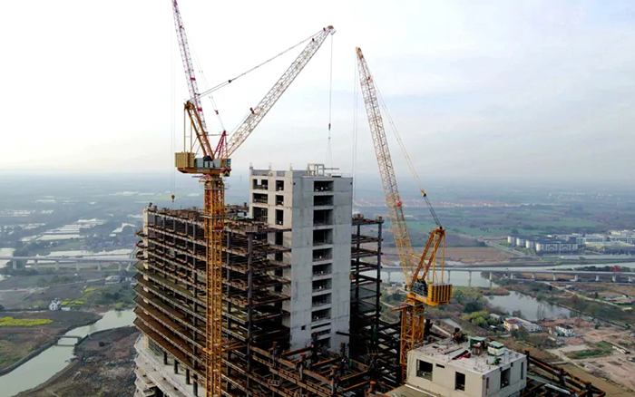 高效、可靠的徐工XGL630-50S塔机承担着楼承板、钢结构和核心筒主体结构等建筑材料的吊装重任。历时340天,从大象酒店的象腿、象鼻三个核心筒结构施工,徐工塔机高效吊装,配合施工人员完成了从0到180米的建设征程。