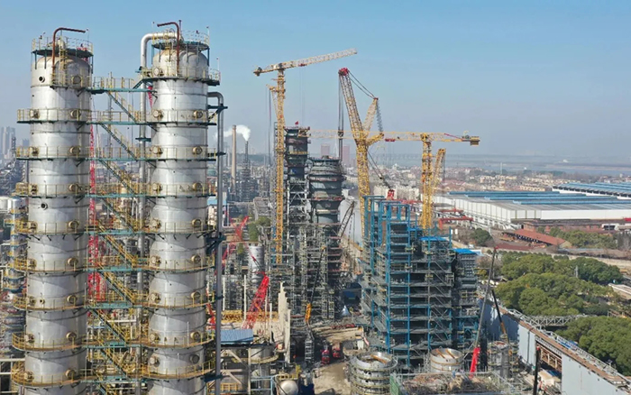 两台徐工XGT360-20S1塔机助建中韩石化280万吨/年催化裂化项目,项目总投资18亿元,由中石化第五建设有限公司承建,目前已进入攻关冲刺阶段,计划于下半年竣工。该项目旨在适应国家炼油企业向化工企业转型的趋势,促进中韩石化炼油结构调整,建设绿色工厂,助力国家“碳中和、碳达峰”目标。