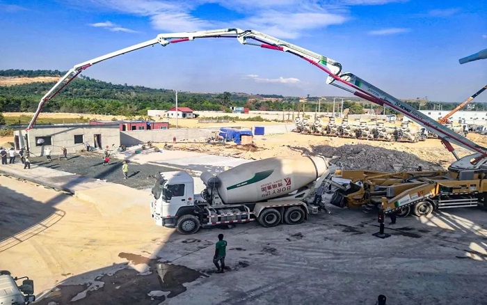此外,数十台徐工搅拌车也活跃在柬埔寨工业园区,徐工 HB50V 为园区基础地坪地面建设施工按下 “加速键”。