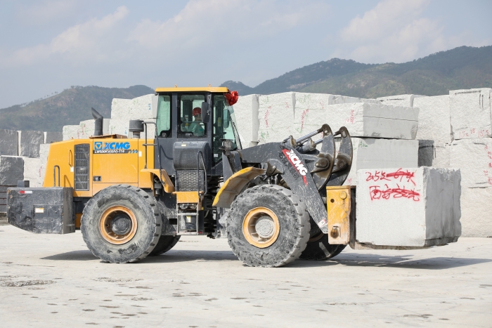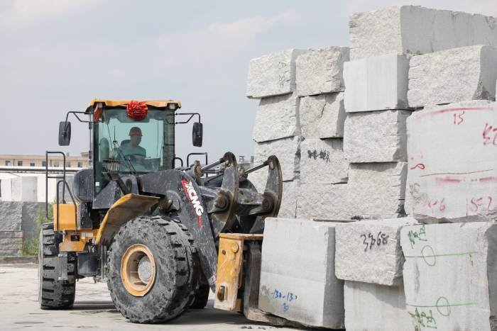 高档花岗岩石材,以其优美的外观、坚硬的质地,一直是公共设施外立面装饰的首选。客户用的这台徐工LW500KV(GIV)-T18石材叉装机已在石材加工厂使用两年,“相比过去用的车,操控轻松方便,视野很开阔,在复杂工作环境下也非常稳定可靠,干活效率高。”驾驶员对徐工石材叉装机赞赏有加。