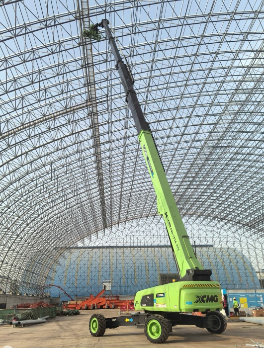 近日,在河南省平顶山市发电厂扩建项目现场,一台“青山绿”涂装的XGS52ACK-Li纯电直臂式高空作业平台格外亮眼,这是该车在2024年上海宝马展全球首发后首次实战应用。