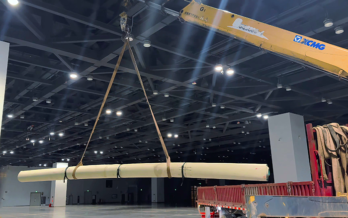 施工中,徐工随车起重机凭借高强度钢材打造的起重臂,展现出惊人的起重能力。吊运成卷塑胶卷材时,它动作流畅,如行云流水般将材料从货箱卸下,稳稳送至场馆指定铺设位置。面对数吨重的特殊塑胶材料吊运难题,其四节臂体同步伸缩,轻松完成任务。“这设备的带载能力远超预期,再重、再难的吊运都不在话下!” 现场项目负责人对徐工随车起重机的强大性能给予高度评价。
