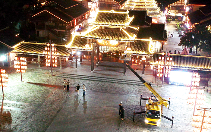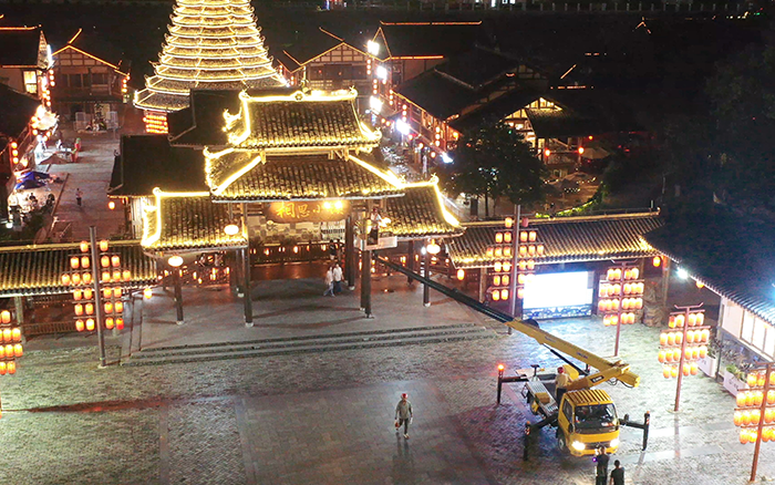 目前,凭借高效、安全、稳定的表现,徐工 C 系列 GKS28 高空作业车正稳步推进文旅小镇亮化工程,为打造特色文旅夜景筑牢根基。