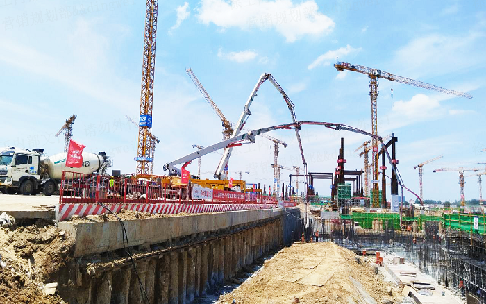 近日,徐工多台大米数泵车与搅拌车于南京北站建设项目实现高效联动作业。