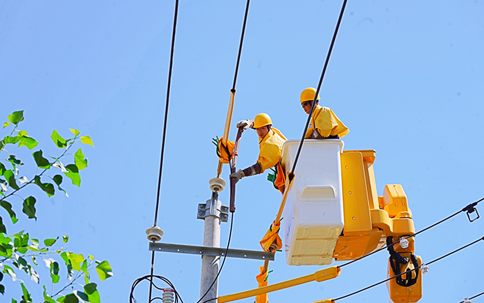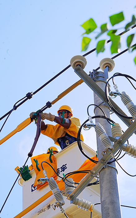 工作人员借助绝缘斗臂车,快速、精准地抵达作业位置。他们身着厚重的绝缘服,有条不紊地开展更换变压器工作。尽管汗水早已湿透衣衫,但大家的眼神中透露出专注与坚定。“绝缘服里像蒸桑拿,好在设备噪声小、连续干活不‘掉链子’,不然真扛不住这高温持久战。” 一位作业人员抹着额头的汗说。
