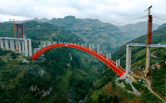 近日,纳晴高速白水河特大桥的主拱圈管内混凝土灌注已顺利完成,全桥施工进度已达到85%。