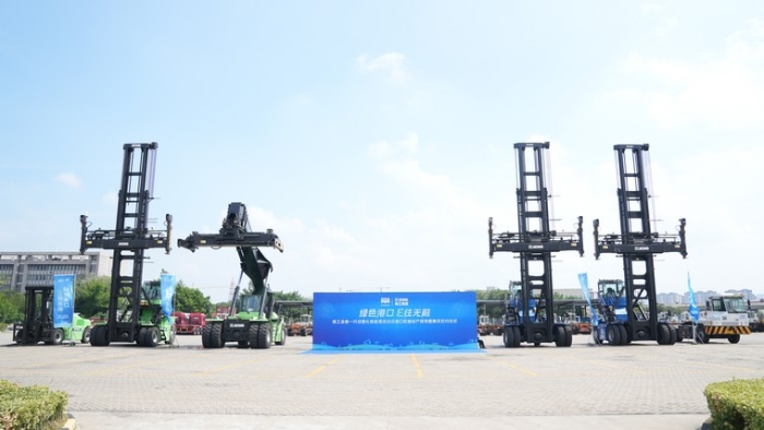 本次批量交付的正面吊、堆高机、港口牵引车、平衡重式叉车等均为纯电驱动,并搭载徐工新一代E5智控节能技术平台,为绿色港口建设注入澎湃动力。