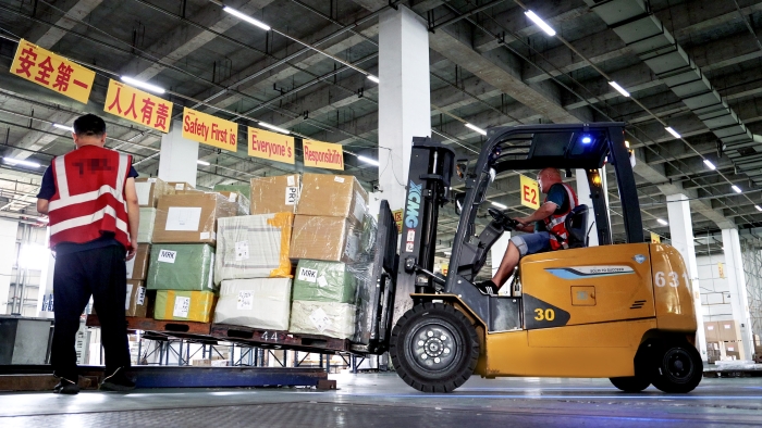 机场前置仓作为货物进入航空运输链路的首站,承担着集中收货、分拣、暂存等任务,具有作业繁忙、吞吐量巨大、连续工作时间长的鲜明特征。面对日均数千吨的货物周转量,徐工定制化部署新能源叉车集群,匹配不同型号的产品来满足搬运需求。