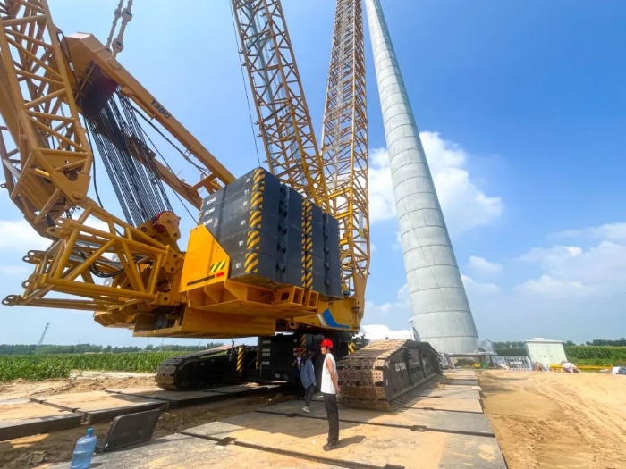 近日,徐工XLC17000(1250吨级)履带式起重机在河南完成6.25兆瓦风机的首吊任务,为风场建设交付关键力量。