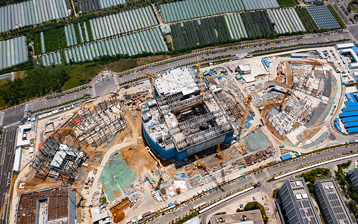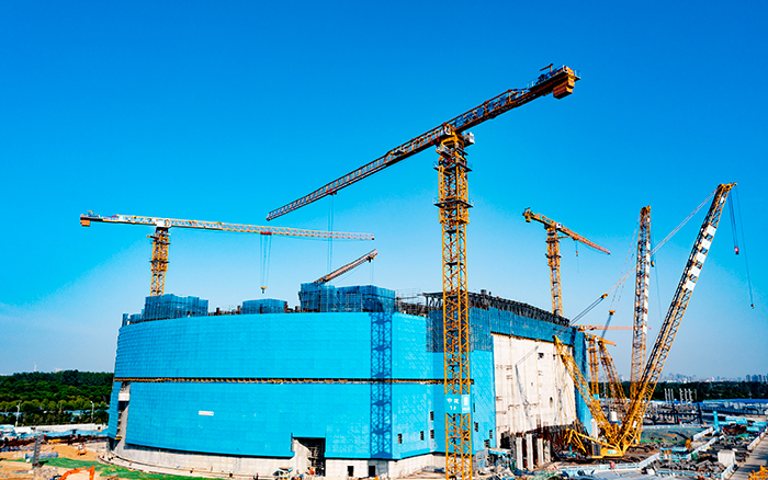 在合肥未来大科学城的核心区域,多台徐工XGT800-40S、XGT600-25S正在系凑型聚变能实验装置园区(BEST)项目上火热施工。