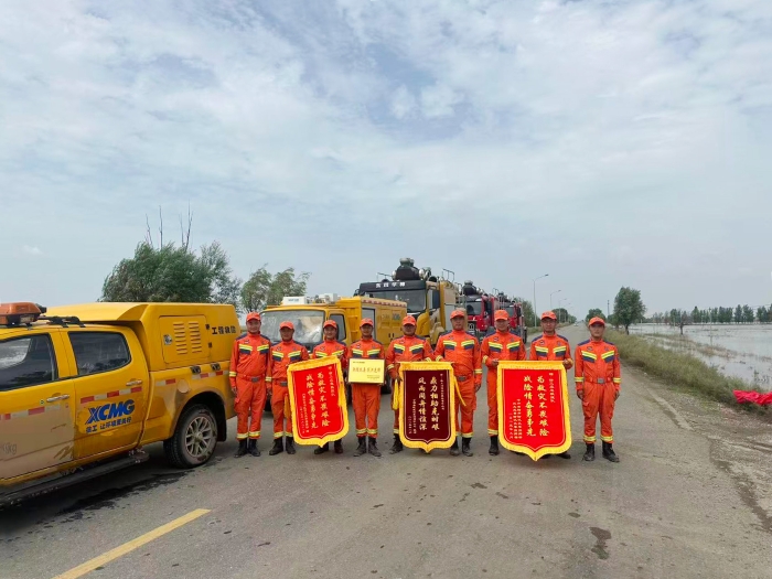 “为救灾不畏艰险,战险情奋勇争先”——锦旗上的话语,不仅是灾区政府与人民的真挚感谢,更是对徐工应急救援队责任与担当的生动注脚。