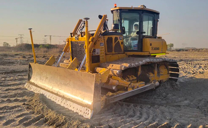 在路基填方平整作业中,徐工推土机铲刀引导系统以双天线GNSS技术实现厘米级铲刀高程精准定位,结合定高定坡一键设定功能,高效完成分层填筑路基土方、在坡度超过1:5的斜坡或沟渠区域,配合开挖台阶、回填土方,并铺设土工格栅等任务。即开即用的高性价比优势,大幅降低测量人力与燃油消耗,推动施工效率与质量双提升。