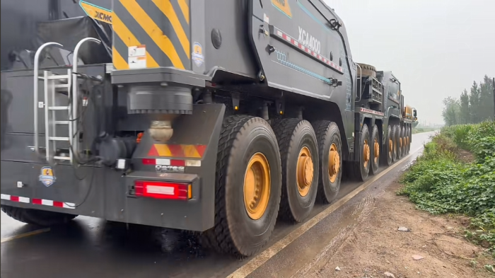 河北乡间的暴雨里,一辆近30米长的“钢铁巨兽”正缓缓“横移”——11桥22个轮胎稳稳抓地,16个驱动轮冲破泥泞,即便暴雨让土路打滑,它也能靠“蟹行模式”精准靠边。这台价值近“半个小目标”的徐工XCA4000起重机,正用硬核实力诠释“大国重器”的真正含义。