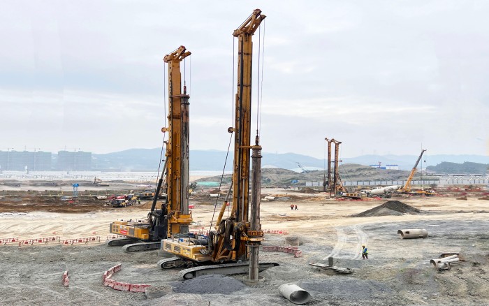 项目场地属软土地基且临近地铁5号线前海公园站,紧贴车站C出口主体结构,施工难度大。现场使用徐工旋挖设备11台,自进场以来,旋挖钻机群相当“给力”,保证项目按照施工节点顺利推进。