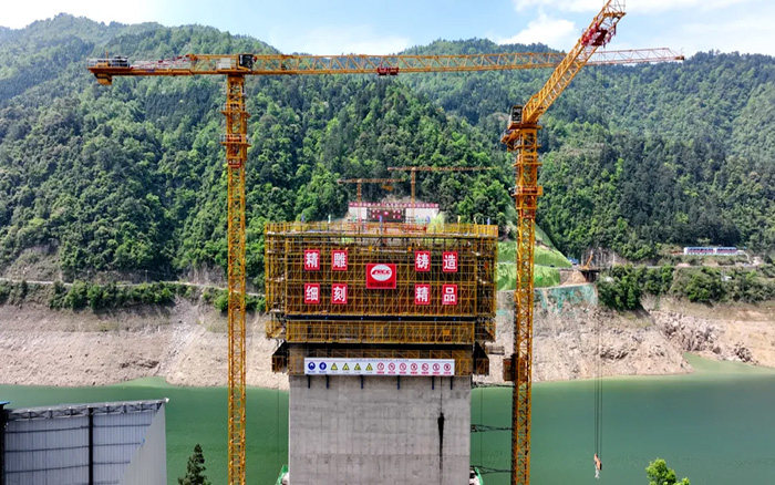 南孟溪特大桥3号墩和4号墩作为大桥的主承结构,桥梁主塔的建设程度直接关乎桥梁的承受力与稳定性,项目方最终决定采用徐工XGT7527A-18S塔机产品负责物料吊装。