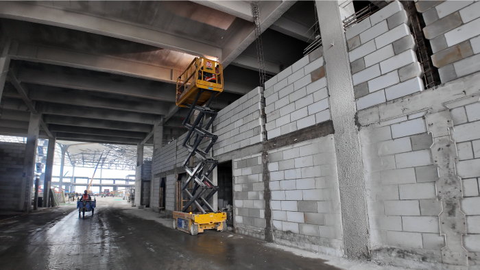 西安东站建设工地上,徐工高空作业平台组成“钢铁军团”正全速推进施工。10余台30-40米直臂车伸展巨臂,精准对接站房屋顶钢结构焊接;12米剪叉车灵活穿梭,高效配合内部砌墙作业。