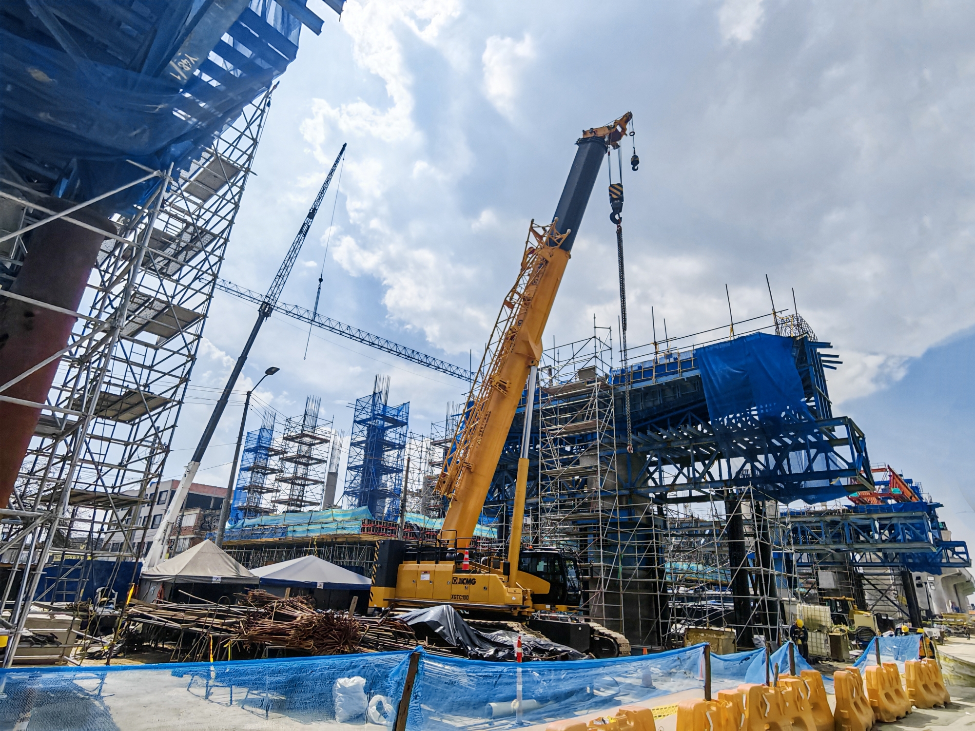 伸缩臂履带起重机XGTC80与XGTC100亮相哥伦比亚波哥大地铁一号线项目,承担钢结构及预制件吊装核心任务。作为当地首条地铁,该项目是区域基建的里程碑,两款装备为项目高效推进提供关键支撑。