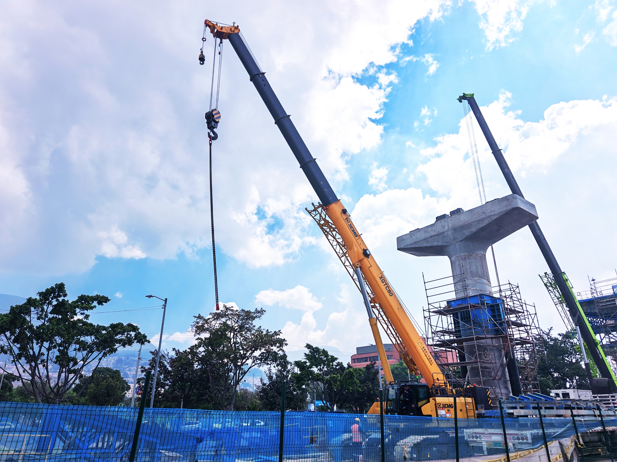 项目施工贯穿城市核心区域,需临时占用公路,作业空间狭窄、交通密集,对设备灵活性要求极高。传统起重机因占地面积大、带载行驶性能差难以适配这一复杂工况,而XGTC80与XGTC100两款设备凭借核心优势成功破局。
