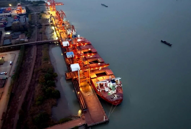 在江苏某内河港口,36台徐工新能源自卸车正有序运转,在装载和转运间,推动着港口物流的绿色未来加速到来。