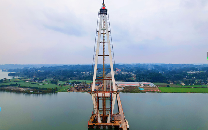 216.6米!徐工塔机助建汉阳湖岷江特大桥主塔封顶