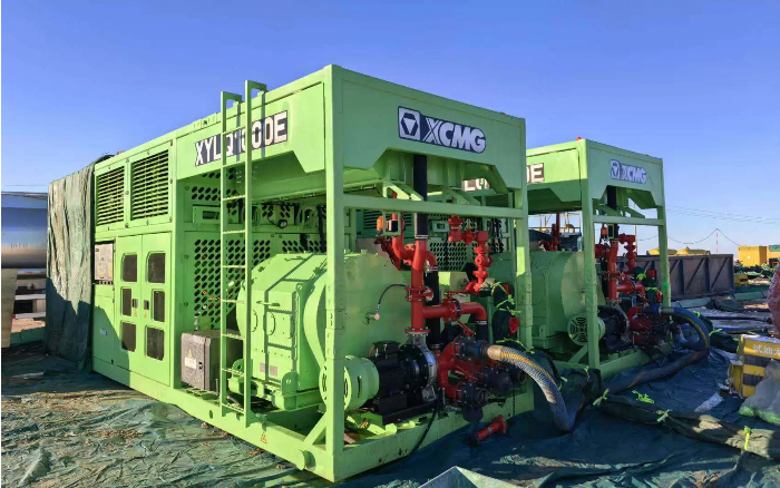 该项目涉及两口井,井深分别达4000m和2800m,要求设备24小时连续运转,稳定提供排量近500L/min、压力大于30MPa的冲井液。面对零下30℃的极寒工况,徐工设备依然稳定出勤、持续高效运行。