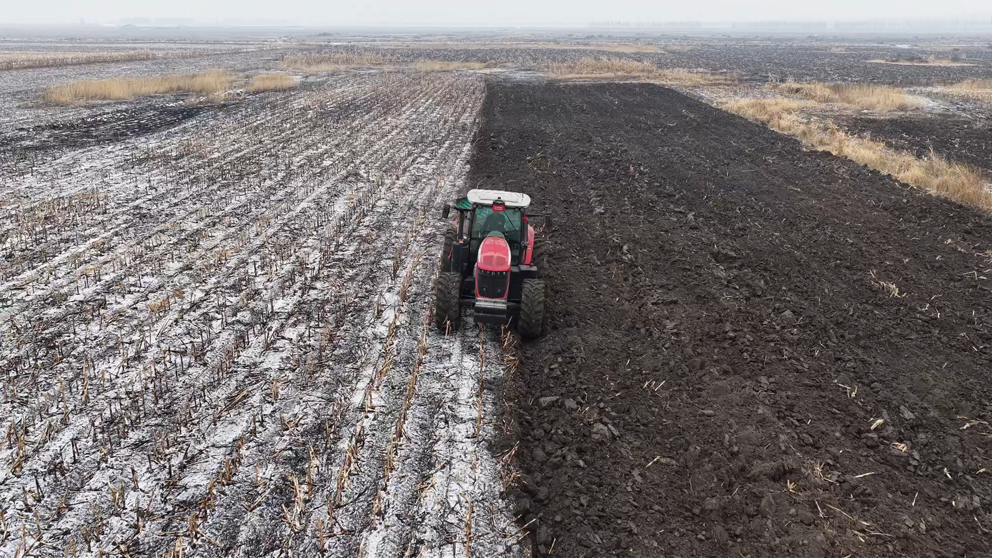 寒风凛冽,银装素裹,在白雪覆盖的吉林土地上一场高效、稳健的耕作正在悄然进行——徐工XT2204拖拉机搭载450液压翻转犁,成为雪地作业中的一抹亮色。